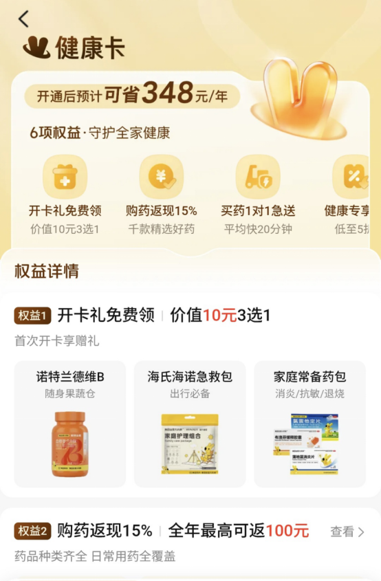 正在本次大会上,“不管用户从哪个入口发出信号,开卡用户可享受跨越1000款药品购药返现15%的权益,